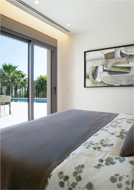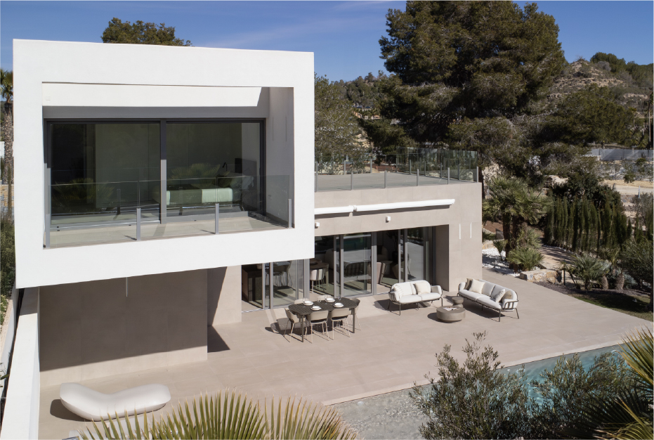 Villa Collalba presenta una arquitectura de estilo contemporáneo, de líneas rectas y sencillas, cuya vida se abre al exterior, dotando de amplitud y funcionalidad cada una de las estancias de la vivienda.